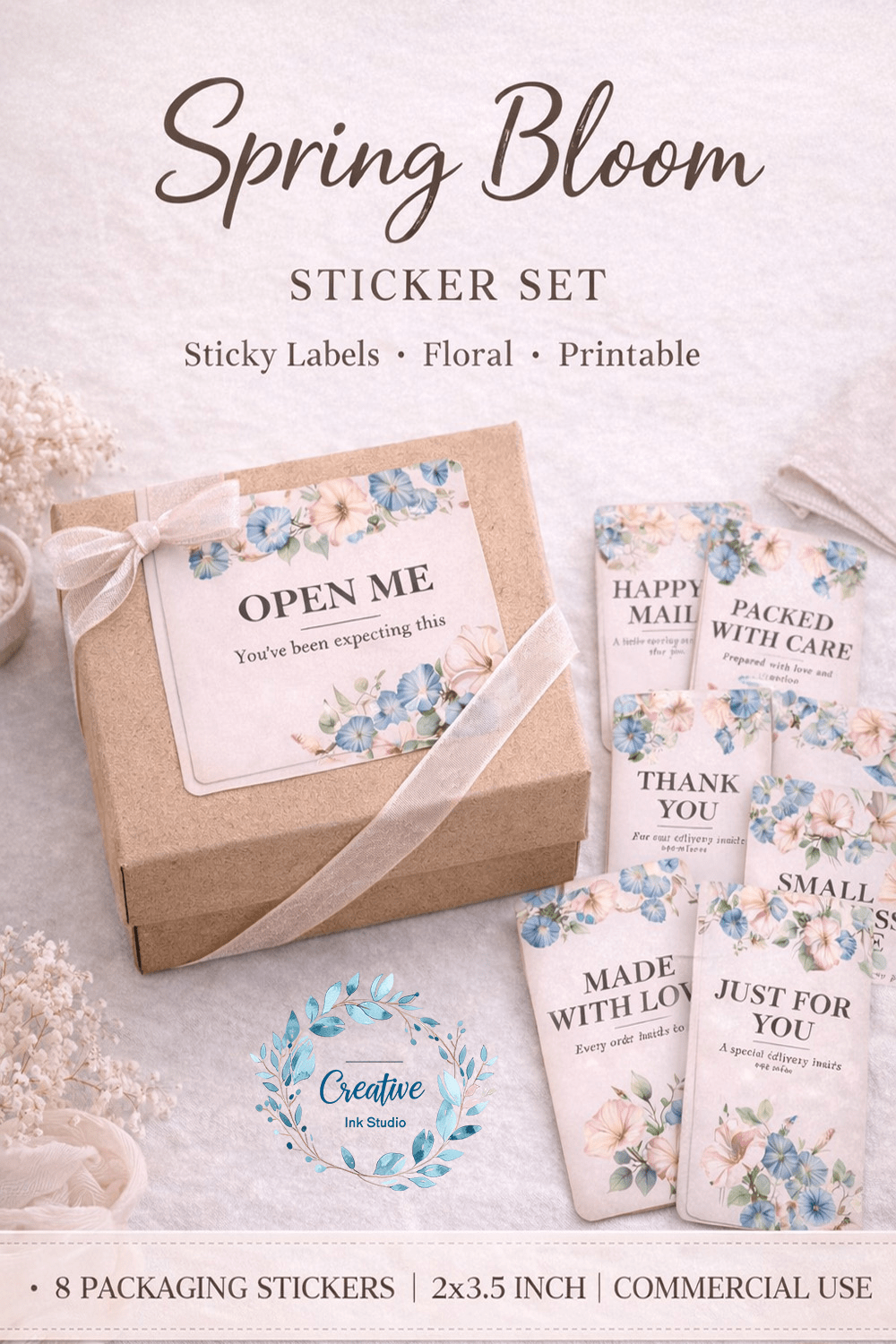 Spring Bloom Sticker Set – Printable Packaging Labels for Small Businesses